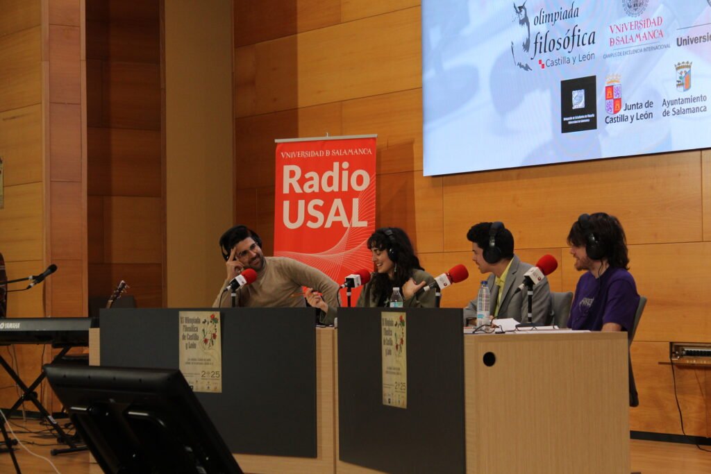 Desde el año 2024, hemos colaborado con la organización de las jornadas de la Olimpiada Filosófica de Castilla y León, convirtiendo el evento en un espectáculo radiofónico en el que aprendizaje y entretenimiento se dan la mano para acercar la filosofía y la radio al alumnado de Secundaria y Bachillerato de Castilla y León.